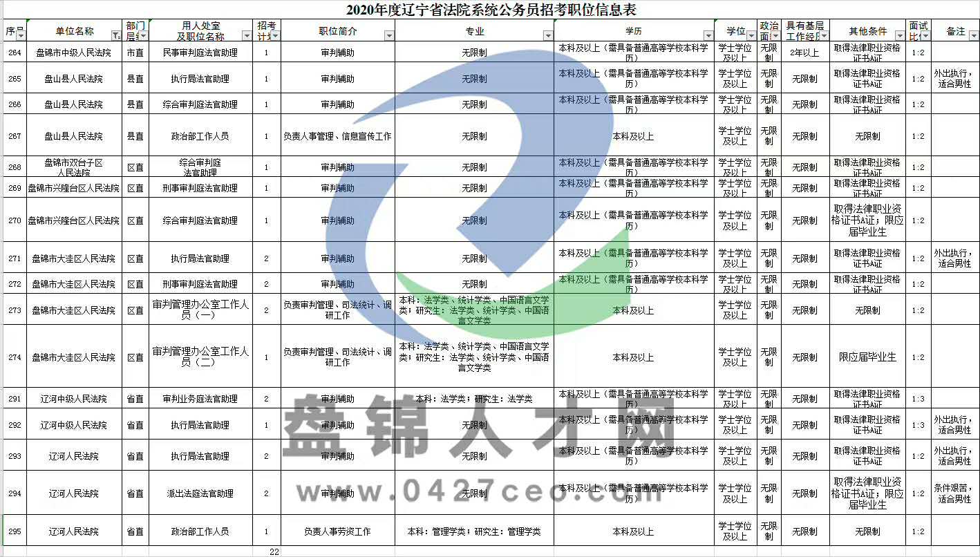 5.當招考職位的報考人數(shù)與招錄計劃未達到開考比例(省級機關為1:3,市以下機關及全省監(jiān)獄戒毒系統(tǒng)開考比例為1:2,其中法官助理、檢察官助理職位,開考比例為1:1.5)時,調整或取消該職位招考計劃,調整或取消的職位及招錄計劃將在遼寧人事考試網公布,報考已取消職位的考生,必須在規(guī)定時間內報考其他符合招考條件但未被取消的職位,招錄機關對改報職位的考生不再進行資格審查。未按規(guī)定時間改報的,視為放棄報考。